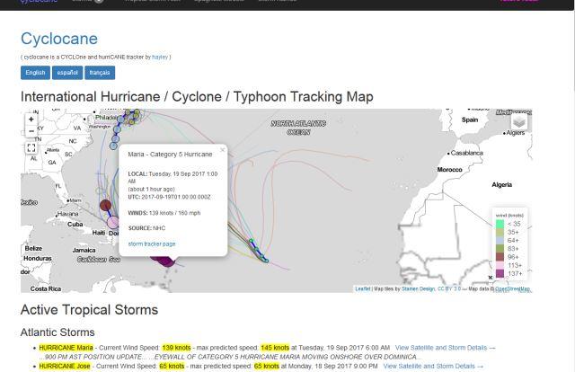 Cyclocane is a storm tracker built by an enterprising web designer named Haley Croft. It shows a map on the main page showing worldwide Hurricane and Tropical Storm activity. It also shows areas of possible storm formation. I like this website because the information is pulled from official sources. A lot of the information is actually pulled from NOAA, with some from other government sources. The website is clean and very easy to use, and everything loads quickly. I also like it because it shows multiple forecast models on the map, so you can see the deviation in the models as well. While I have not noticed any discrepancies in the data, most experts will recommend you always check official sources.