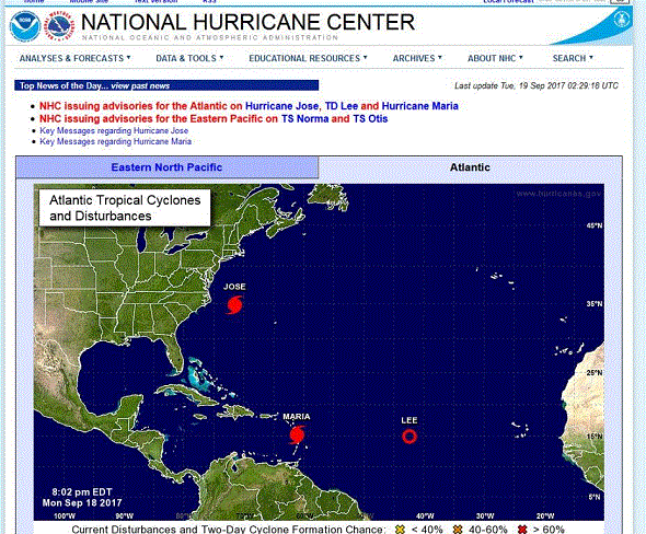 The first step in protecting yourself and your loved ones is to stay informed. I am going write about a couple of free resources that you can use online to keep tabs on storms. I want to emphasize these are no replacement for the judgement of a trained meteorologist or emergency management officials. Tuning in to local media is the best option, as much is practicable. No matter what you may think based on this information, local officials may say you need to evacuate. If you have the means to do so you should follow their instructions. Safety should come first, but, I also believe in having all available information. These two resources will help you acquiring that information.